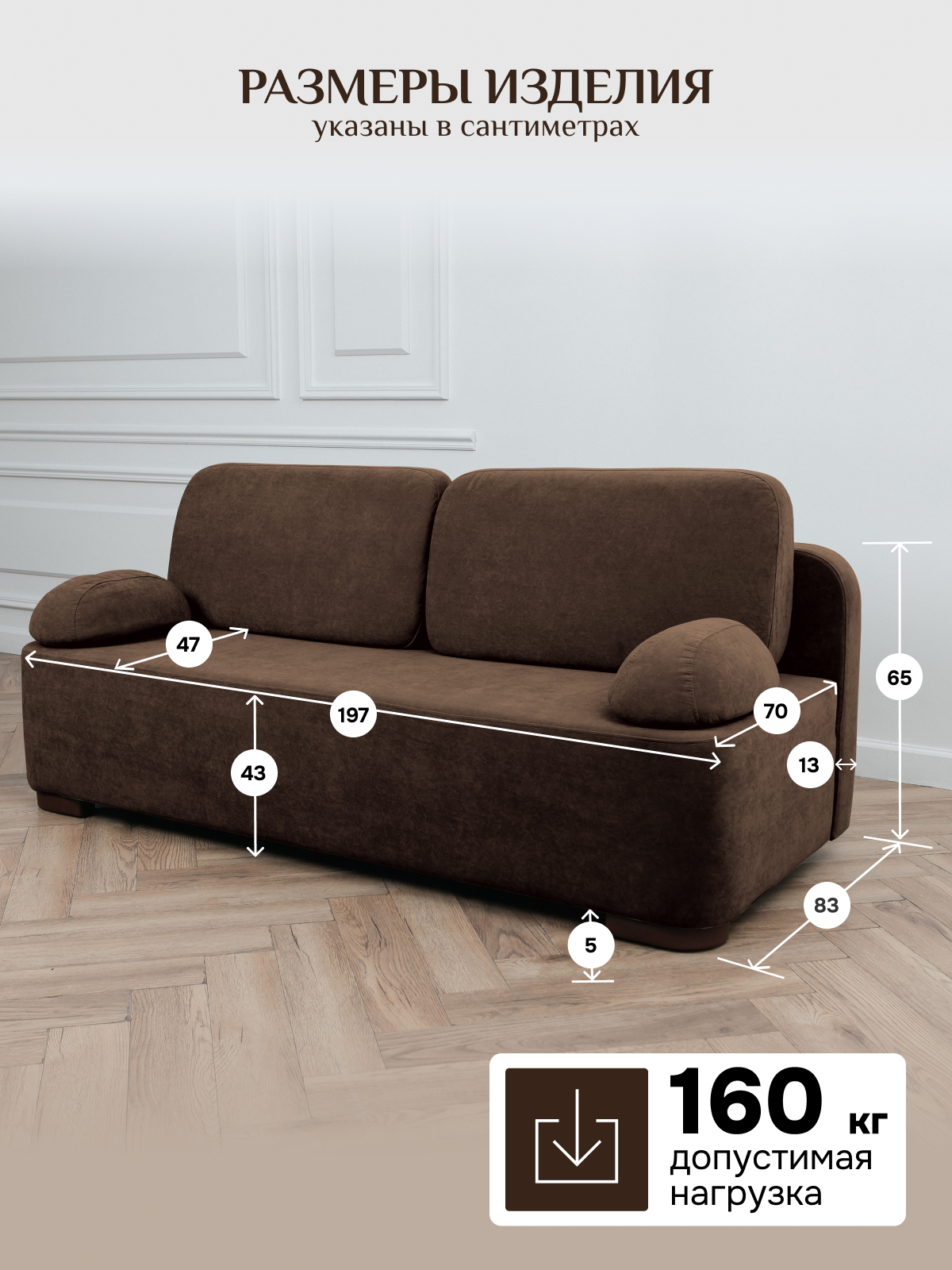 Габариты: Ширина, см 197 глубина, см 83 Высота, см 65