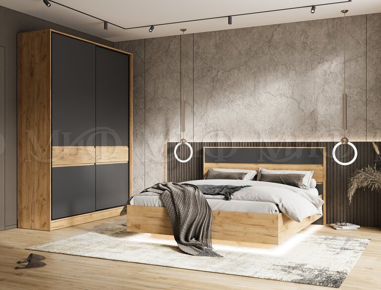 Артикул: A63570Спальный гарнитур Роджина крафт/графит, модульный (Миф)