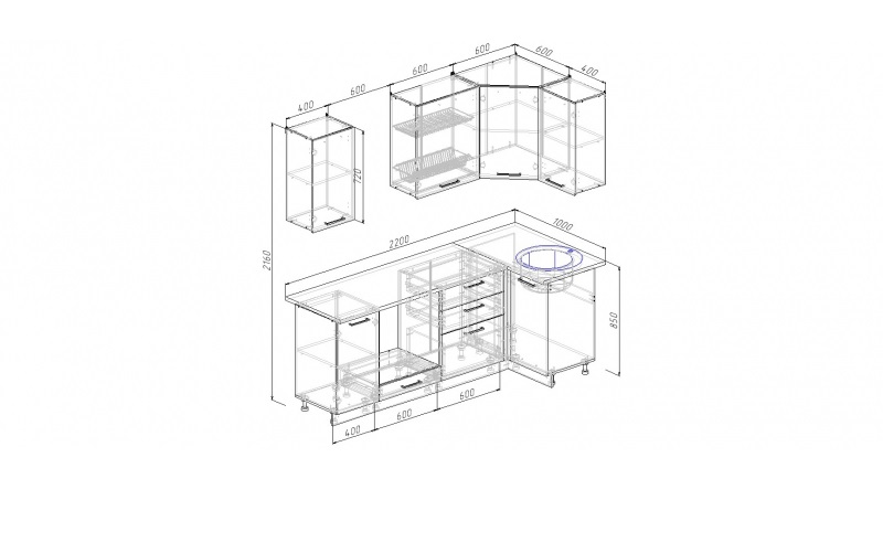 Артикул: A60136Угловой кухонный гарнитур Крафт 2200*1000 мм